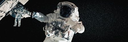 Astronaut spaceman working for space station in outer space