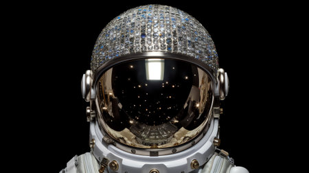 Astronaut helmet with reflections of stars on the visor