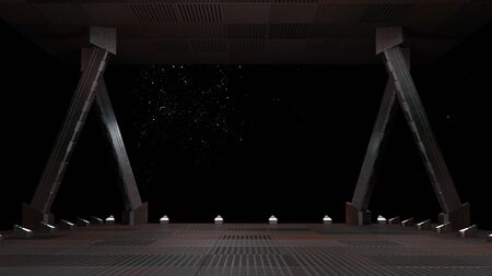 Space concept. View from orbit to the planet Earth. Opening of the gate with a view of the planet Earth. Space station. High quality 3d illustration