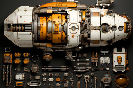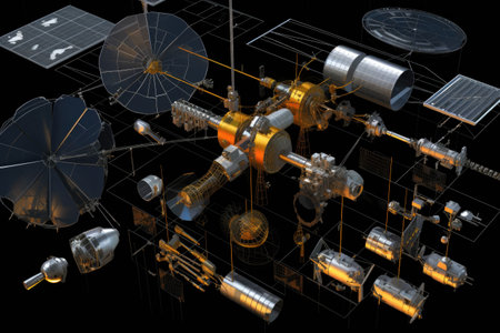 components of solar sail propulsion system laid out, created with generative ai
