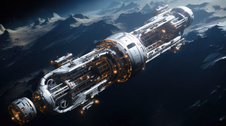 large spaceship in space in orbit against the background of the earth, Cinematic Still, Future concept, Generative AI