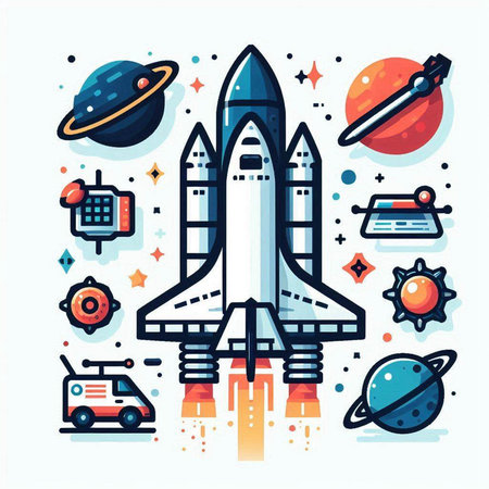 Rocket flat vector illustration. Spaceship, rocket, spaceship, spaceship, astronaut, spaceship, spaceship, ship, spaceship, spaceship, transport, aircraft.