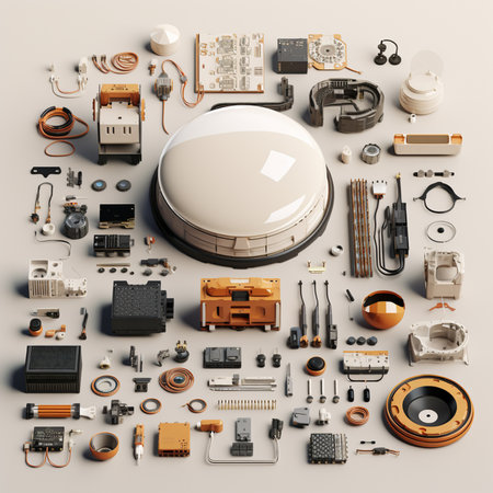 3d illustration of various electronic parts and tools on a white background