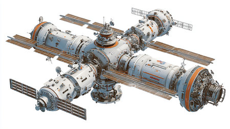 3D rendering of a space station isolated on white background with clipping path
