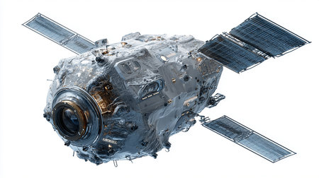 Generative AI : The space satellite with solar batteries isolated on a white background Elements of this image were furnished by NASA
