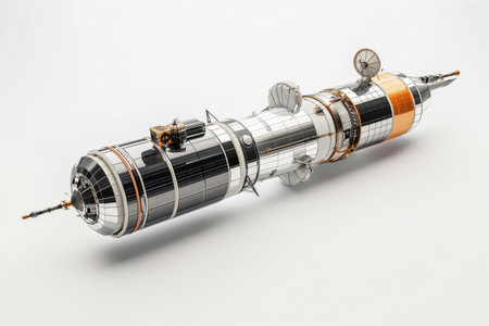Highly detailed spacecraft model is floating on a white background, showing its intricate design and advanced technology