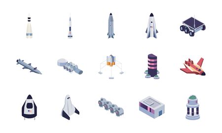 Space station, rocket, spaceship and other elements. Vector illustration.