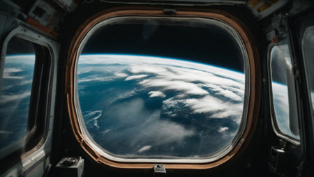 Earth view from space capsule window with atmospheric details
