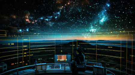 inside the space station, with view of earth below, created with generative ai