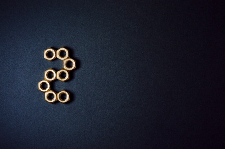 Golden mechanic nuts forming shapes and numbers in dark background.