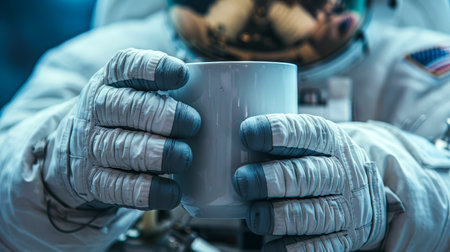 astronaut's relaxing moment outside the world, sipping coffee in space. Experience the solitude and beauty of space exploration.