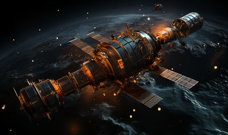 Space Exploration Satellite Orbiting a Blue Planet, a Stunning Display of Technology and the Cosmos