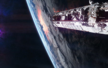 Space station on background of Earth. Solar system. Science fiction. Elements of this image furnished by