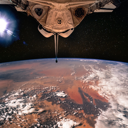 view from space station window on planet
