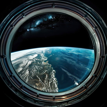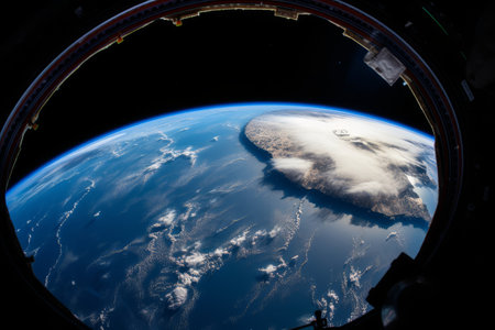 Earth view from space capsule window with atmospheric details