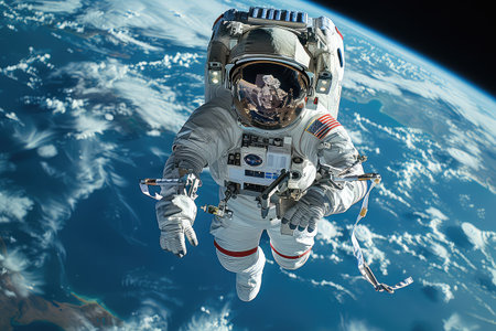 Astronaut floating in space with Earth in the background, encapsulating the vastness of the cosmos