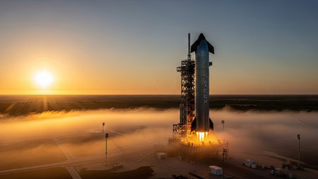 Rocket Launch at Sunset Illuminates the Sky as Powerful Engines Ignite for a Space Mission Generative AI