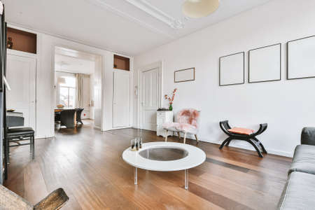 Interior of bright living room with stylish furniture