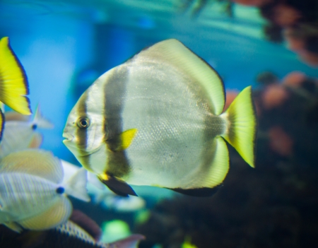 Underwater shot of fish Platax orbicularis close up