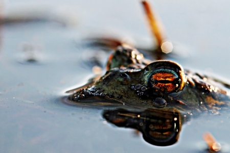frog in the water close up