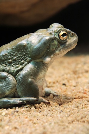 Giant African Bullfrog (Pyxicephalus adspersus), resting in a dark place