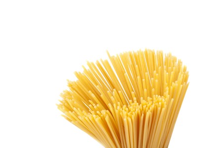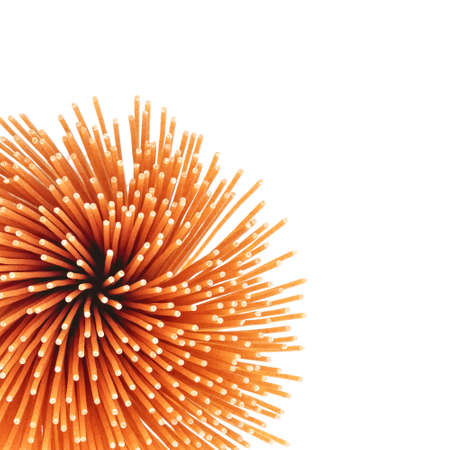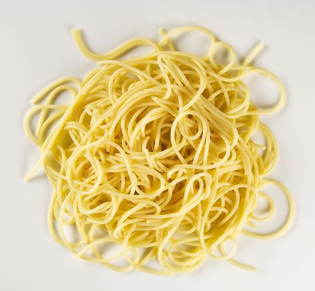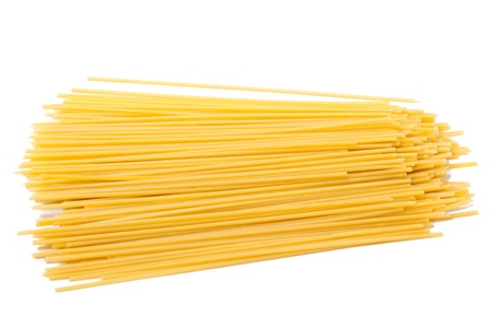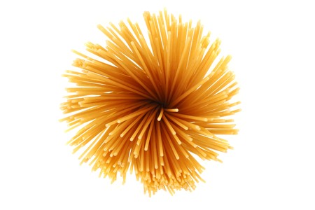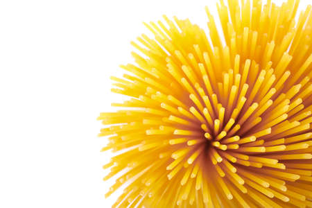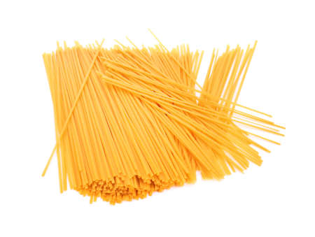 Bunch of spaghetti isolated on white background. Top view. Close-up.