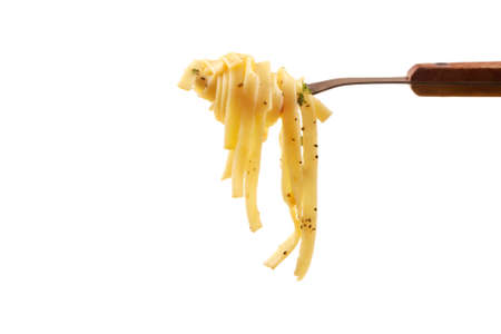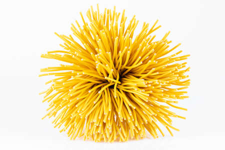 Yellow long spaghetti Yellow pasta isolated on white background, Italian food and menu concept