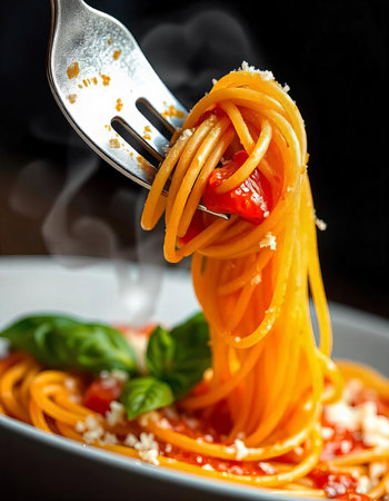 A composition of spaghetti, italian food