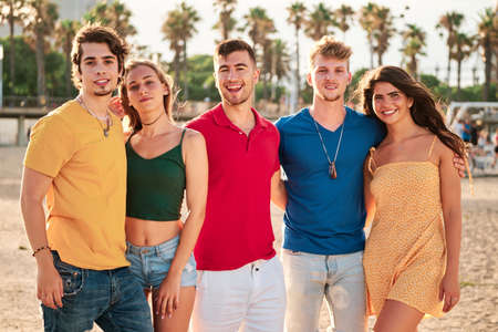 group of young and handsome people at the beach in a summer day