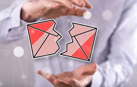 concept of inbox organisation and clean-up, group of envelopes inside box metaphor of email inbox and some marked as spam or mailing list content