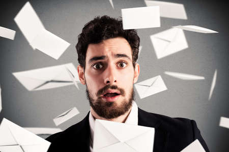 Concept of businessman and email spam with flying email