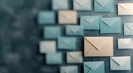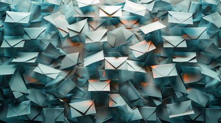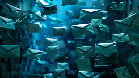 A collection of digital envelopes is seen floating in a dark virtual space, symbolizing modern communication methods.