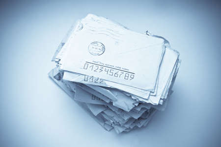A bunch of envelopes are stacked on top of each other. The envelopes are all different sizes and are scattered throughout the image. Scene is chaotic and disorganized