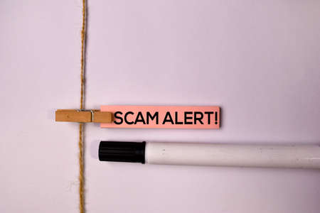 Scam Alert concept on red screen mobile, smartphone closeup on white background