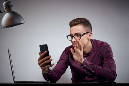 Adult man writing a lot of e-mails and receiving new work notifications on the laptop