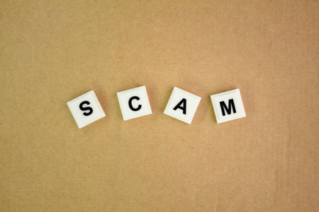 letters of the alphabet with the word scam. online scammers. robber. thieves in cyberspace. hackers