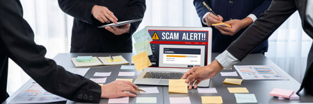 Email concept with laptop spam and virus computer monitor internet security concept, businessman reading electronic mail with a laptop. Spam, junk and e-marketing on screen, Spam Email Pop-up Warning.