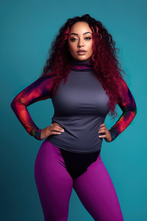 A woman in a purple top and purple leggings. Generative AI.