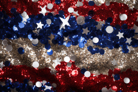 Close up of glitter red white and blue patriotic stars.