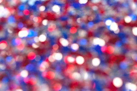 Abstract sparkling blured background in colors of USA or United Kingdom flag for your design or greeting card with blue, red and white bokeh. Festive concept. Independence Day or Christmas celebration