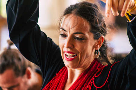 Seville Spain September 04, 2021 Flamenco dancers in the streets of Seville during the coronavirus outbreak hitting Spain