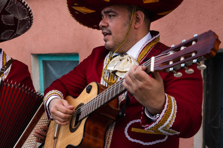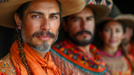Vibrant traditional mexican attire worn by hispanic adult male in embroidered sombrero. That the image is generated using AI.