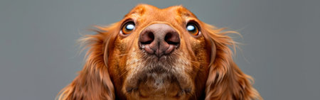Close-up of a brown dog of the munsterlander breed with carry background.