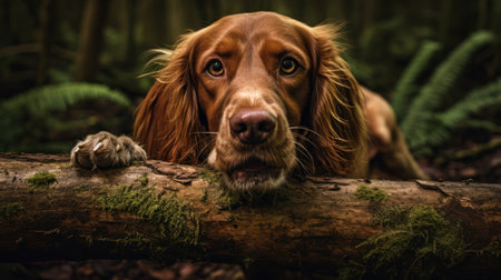 red spaniel in the forest portrait