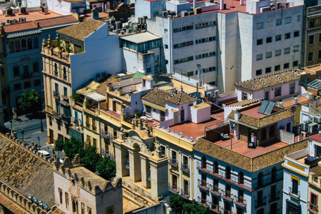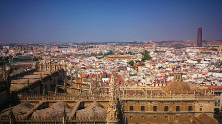 View from above over the Seville, capital city of Andalusia region in Spain.