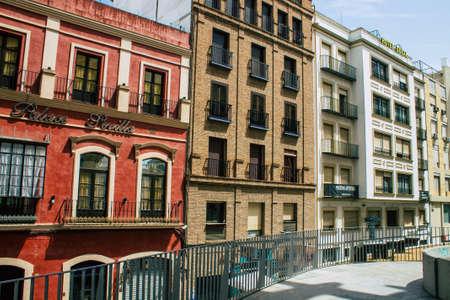Seville Spain August 10, 2021 Facade of a building in the streets of Seville, an emblematic city and the capital of the region of Andalusia, in the south of Spain