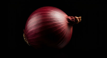 Fresh red onion on black background, close up, studio shot.