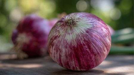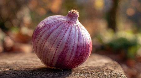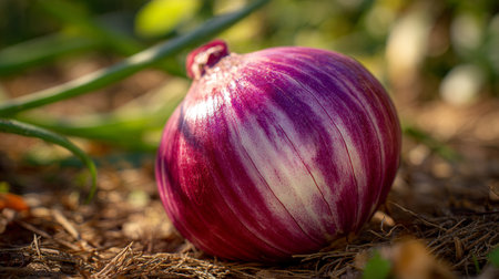 AI Generated. The purple luster of the onion skin shines brightly in the sunlight