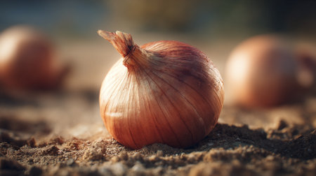 Onion on the ground. Selective focus. Shallow depth of field