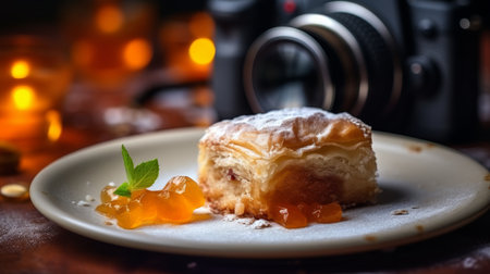 Delicious baked goods with a camera in the background - food photography concept for commercial use